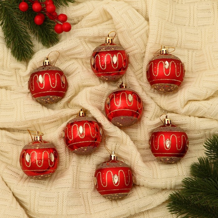 Набор шаров пластик d-5,5 см, 8 шт "Карнавальная ночь" красный