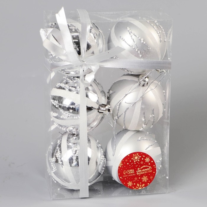 Набор шаров пластик d-7 см, 6 шт "Маскарад" серебро