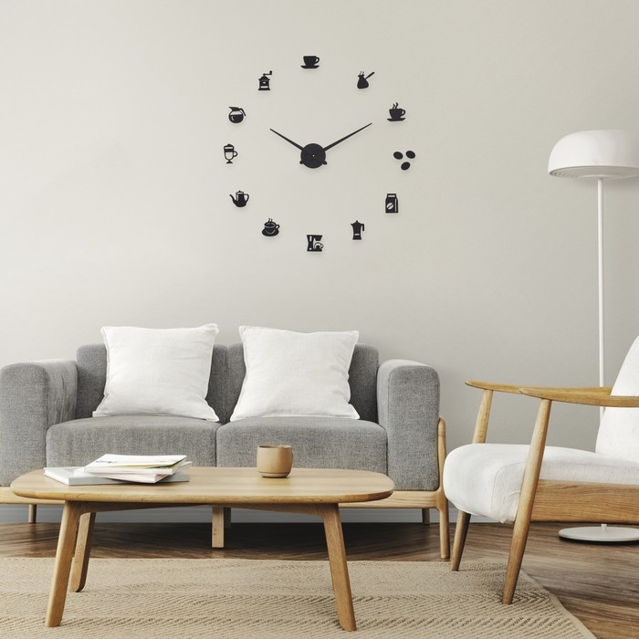Часы настенные интерьерные для кухни, 3d "Время кофе", наклейка, большие, d-120 см