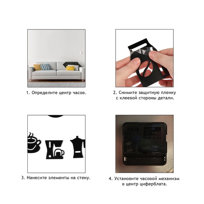 Настенные часы дополнят декор и интерьер вашего дома и станут отличным подарком близким людям. Стильные и красивые часы на стену с кварцевым механизмом будут украшением вашей кухни или столовой. Они работают на батарейке типа АА (в комплект не входит), имеют регулируемые размеры циферблата и 3д эффект благодаря вспененной основе. Клеящий слой позволяет разместить часы на различные поверхности: любые виды обоев, окрашенные, деревянные, пластиковые, керамические или металлические.
