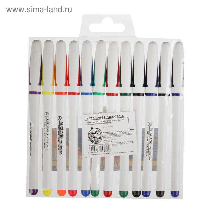 Набор гелевых ручек, 10 цветов, корпус белый с цветными вставками, в блистере