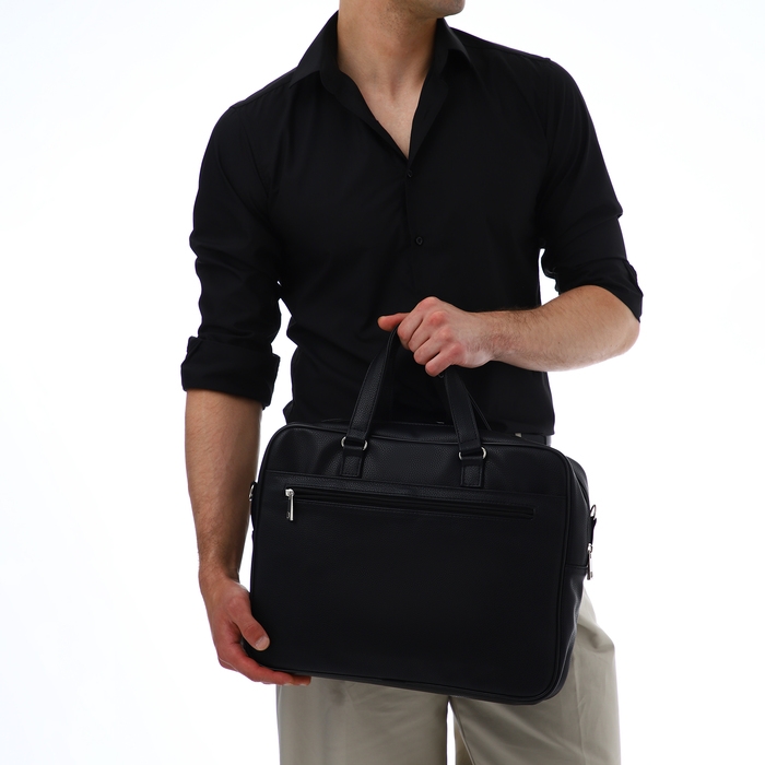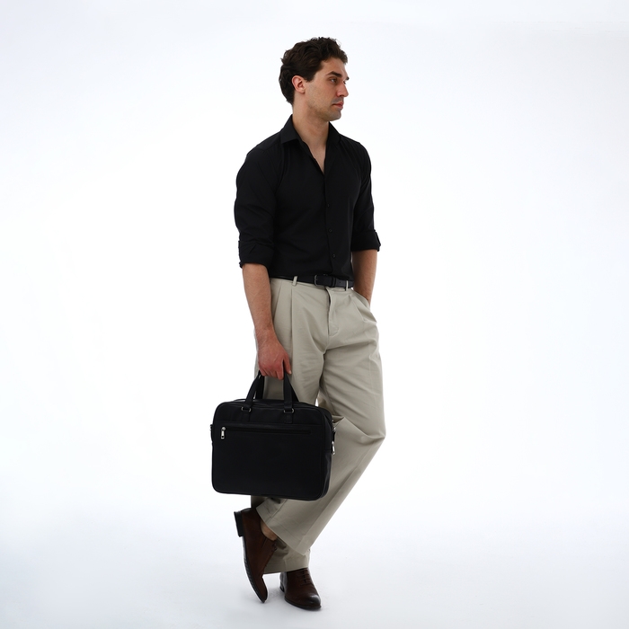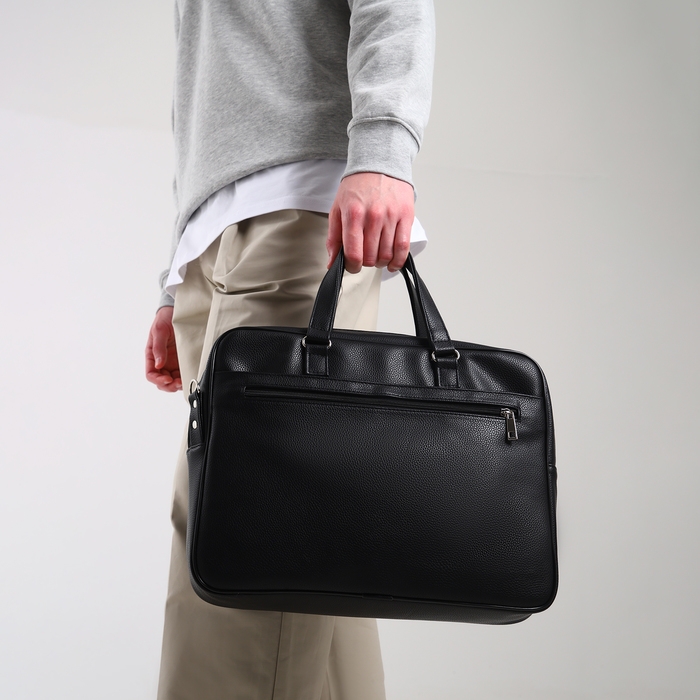 Сумка деловая на молнии TEXTURA, 2 наружных кармана, цвет чёрный