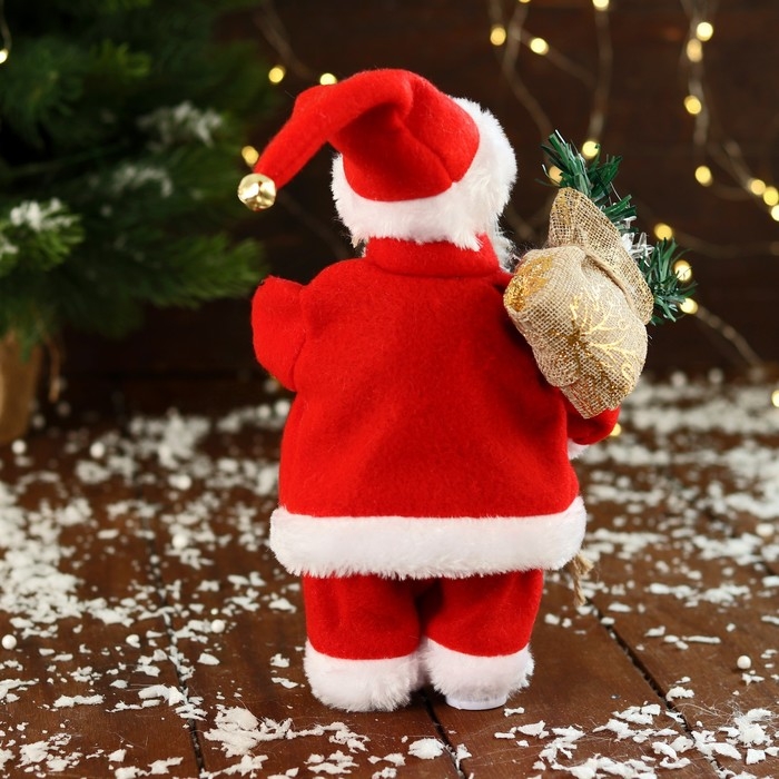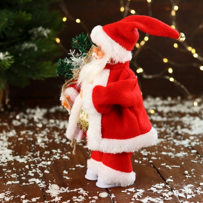 Дед Мороз "В узорчатом жилете, с подарками" двигается, с подсветкой, 24 см, красный