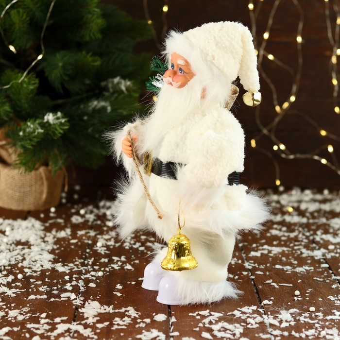Дед Мороз "В меховом костюме, с фонариком" двигается, с подсветкой, 28 см, белый