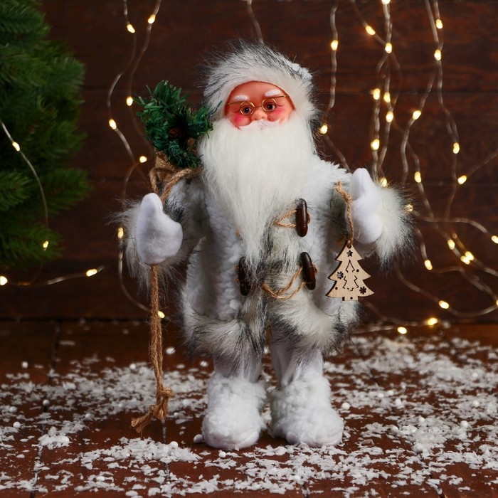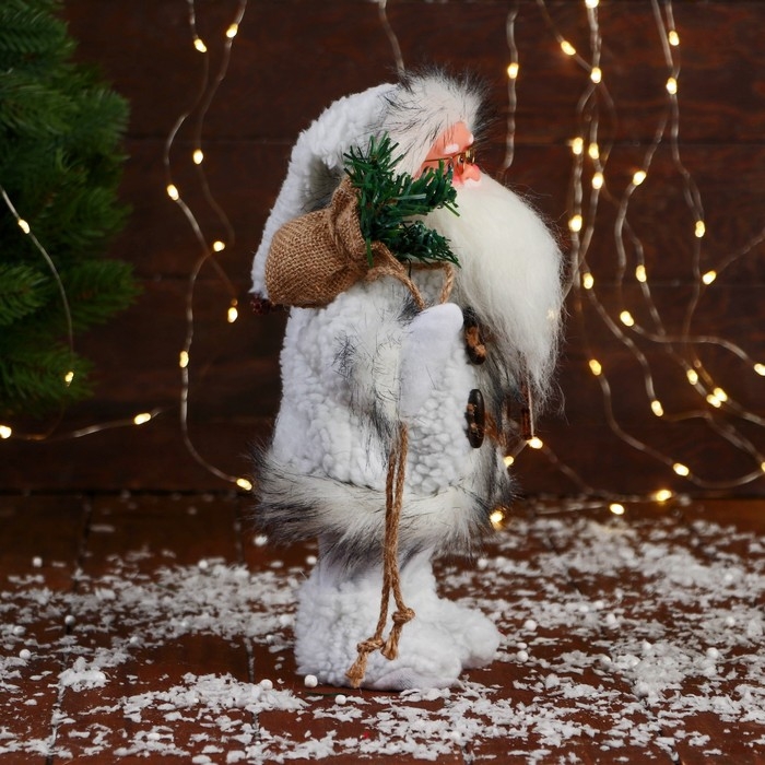 Дед Мороз "С кудрявой бородой, в меховом костюме" 28 см, белый
