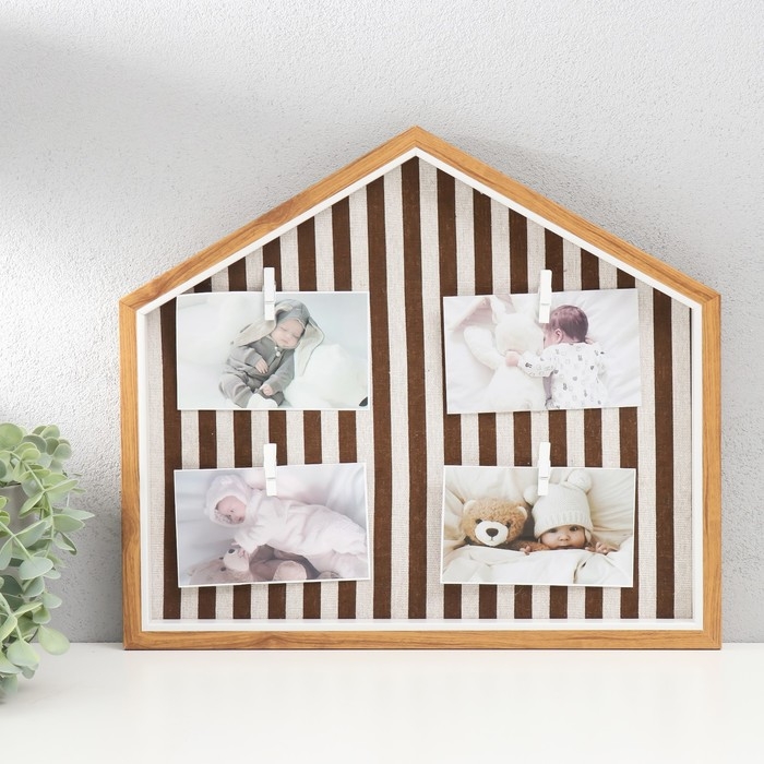 Фоторамка пластик, текстиль на 4 фото "Милый дом в коричневую полоску" с прищепками 40х35 см