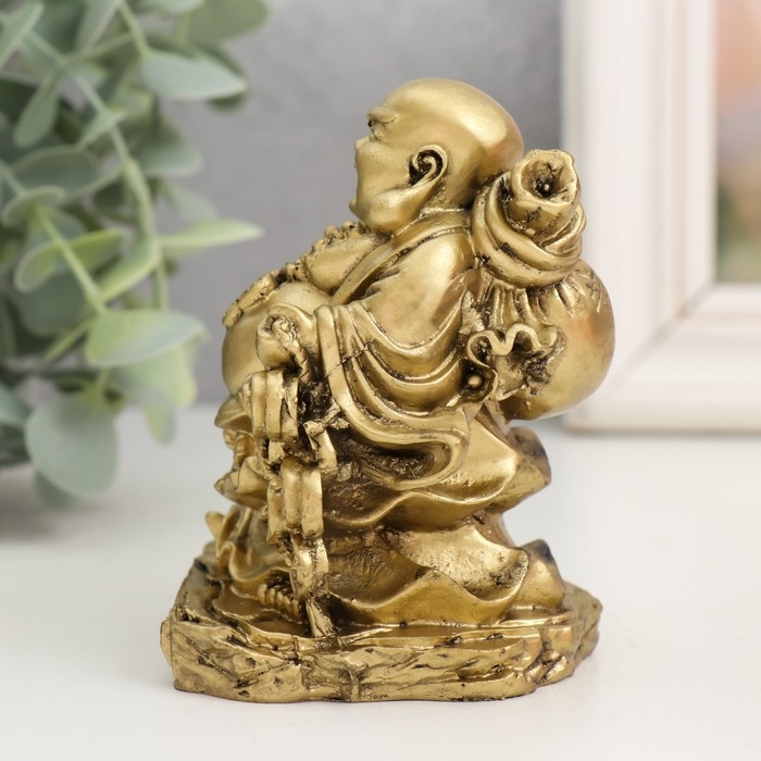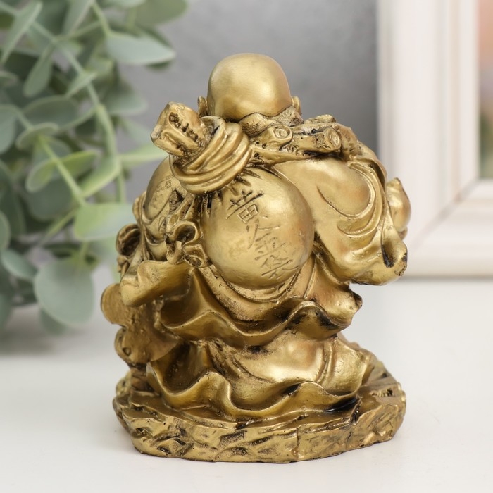 Нэцкэ полистоун под бронзу "Хотей с монетами. Богатство" 6,7х7х9,5 см