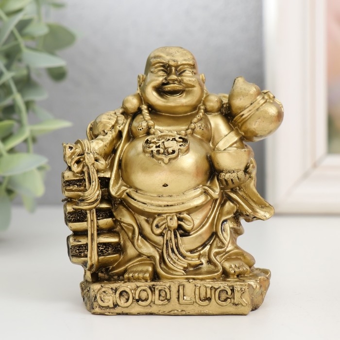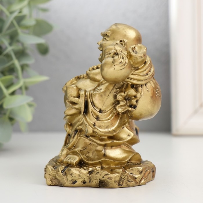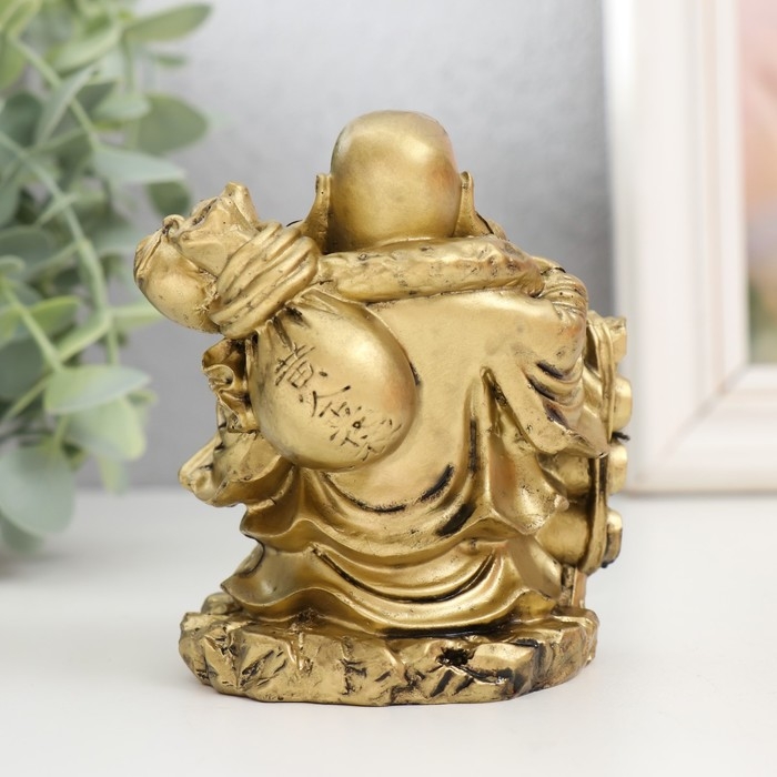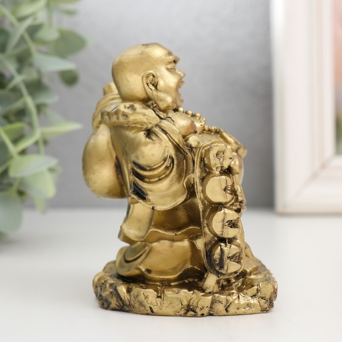 Нэцкэ полистоун под бронзу "Хотей с чашей. Удача" 6х8х9,5 см