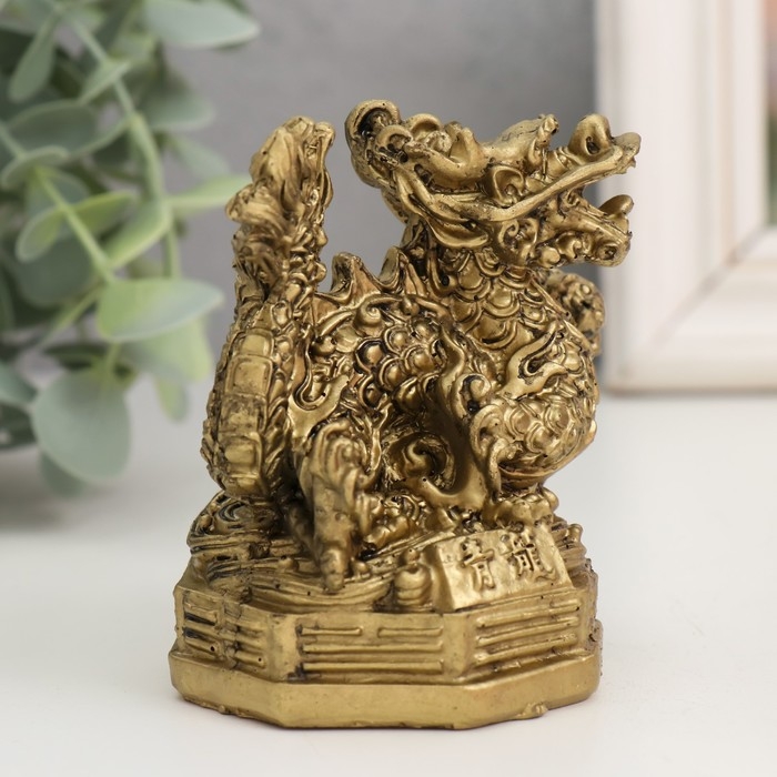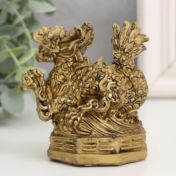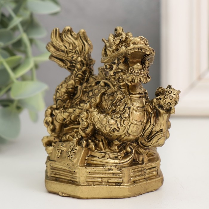 Нэцкэ полистоун под бронзу "Дракон с жемчужиной" 5,6х7,3х8 см