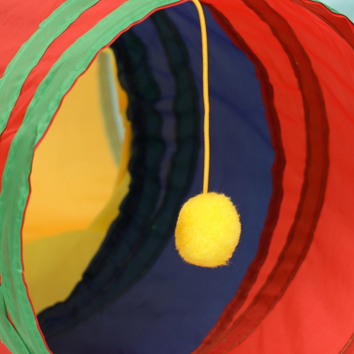 Туннель для кошек с игрушкой, 120 х 25 см, разноцветный