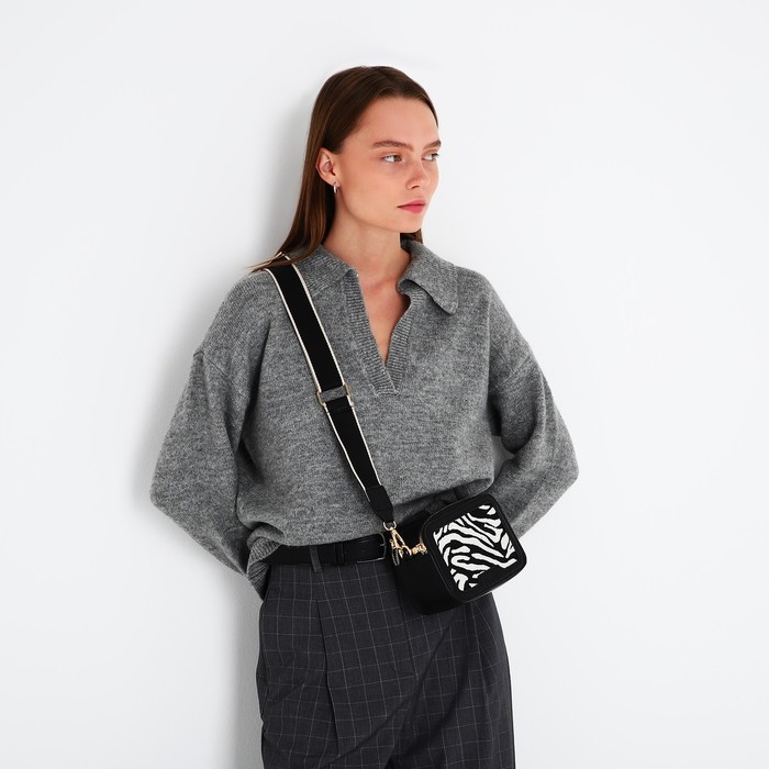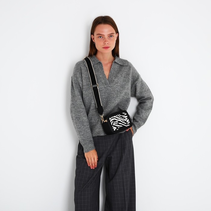 Сумка кросс-боди на молнии, цвет чёрный/белый