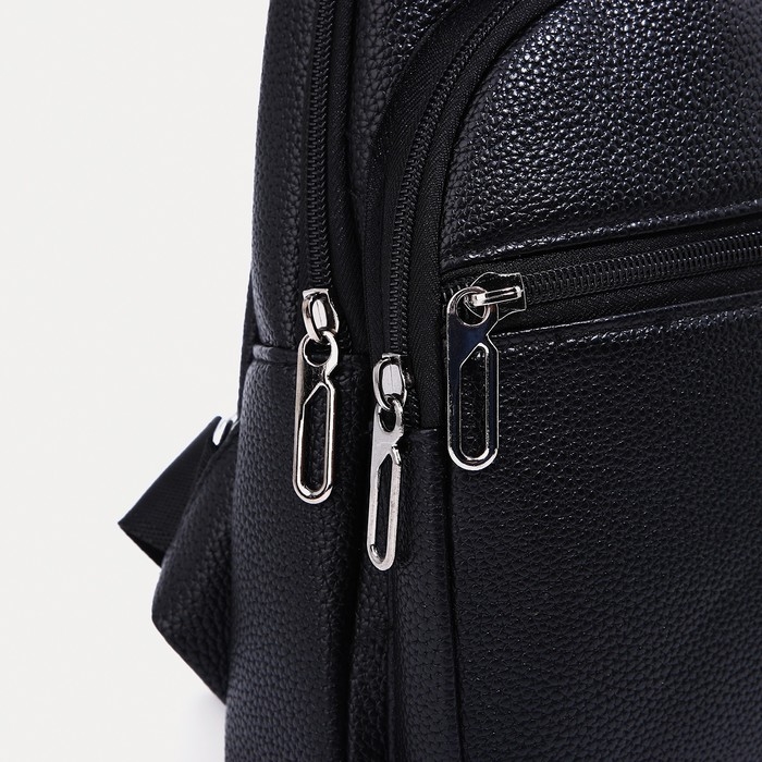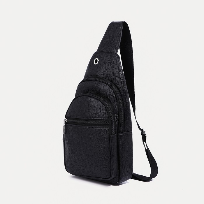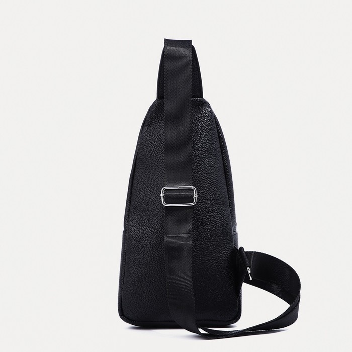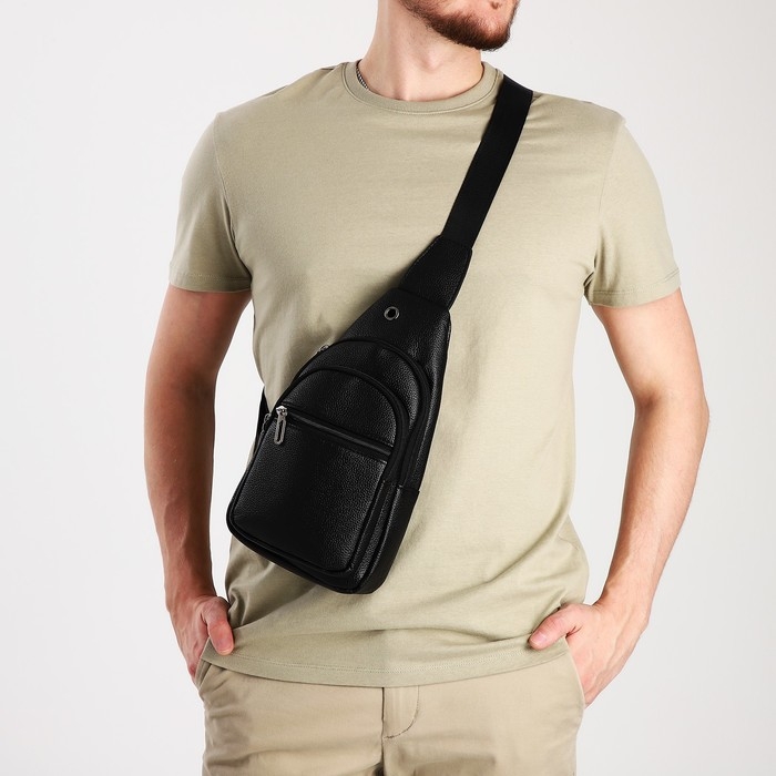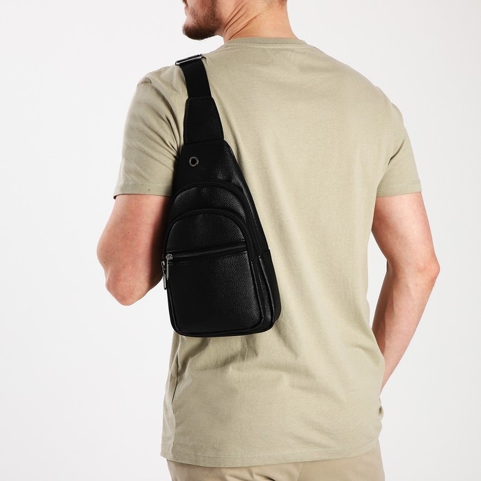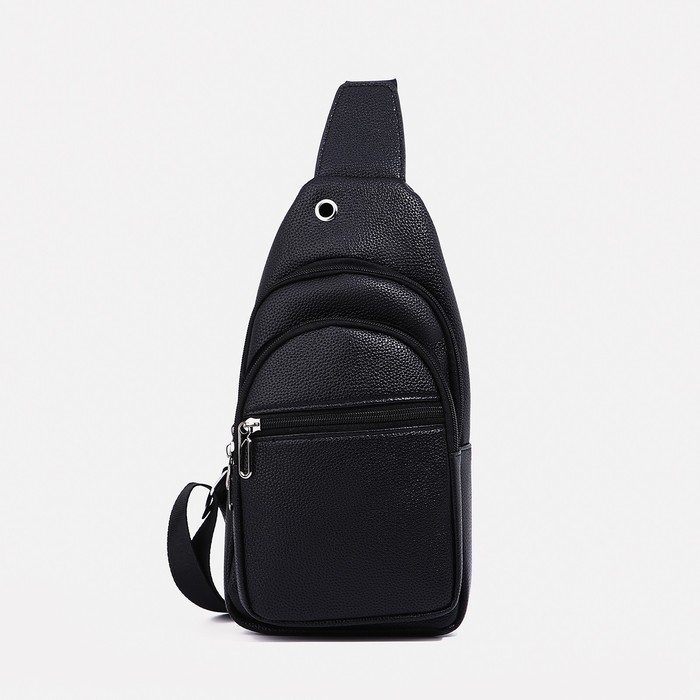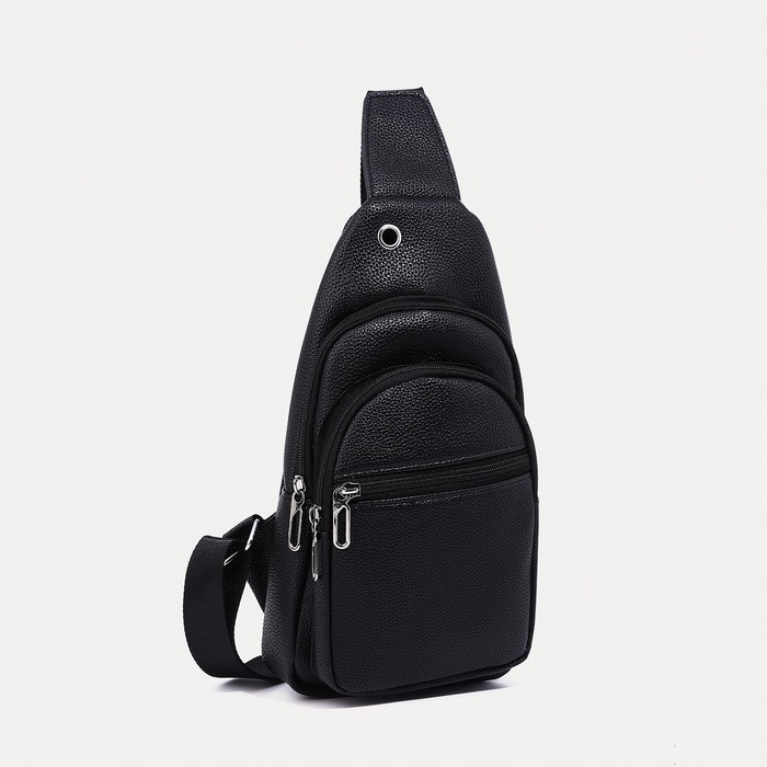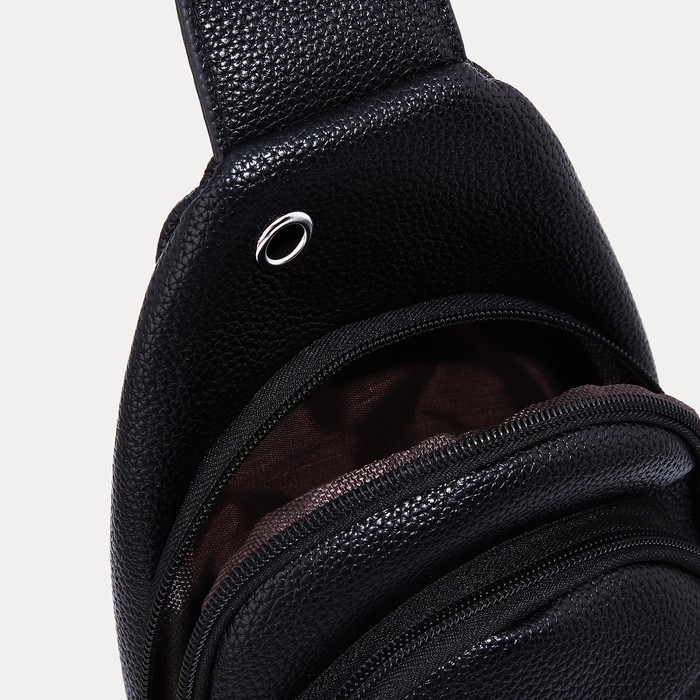 Сумка-слинг мужская, искусственная кожа, отверстие для наушников, цвет чёрный