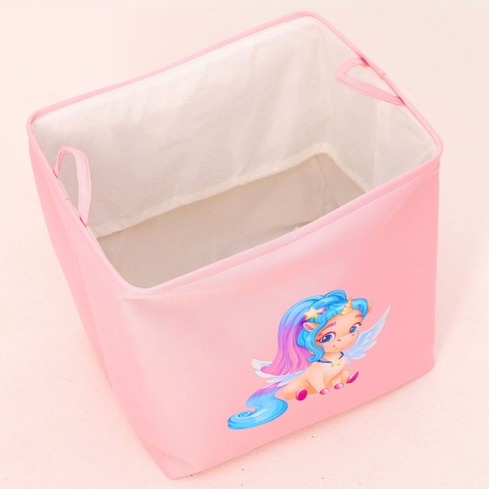 Корзина для хранения игрушкек с затяжкой на веревке, 40 х 50 х 48 см, розовая