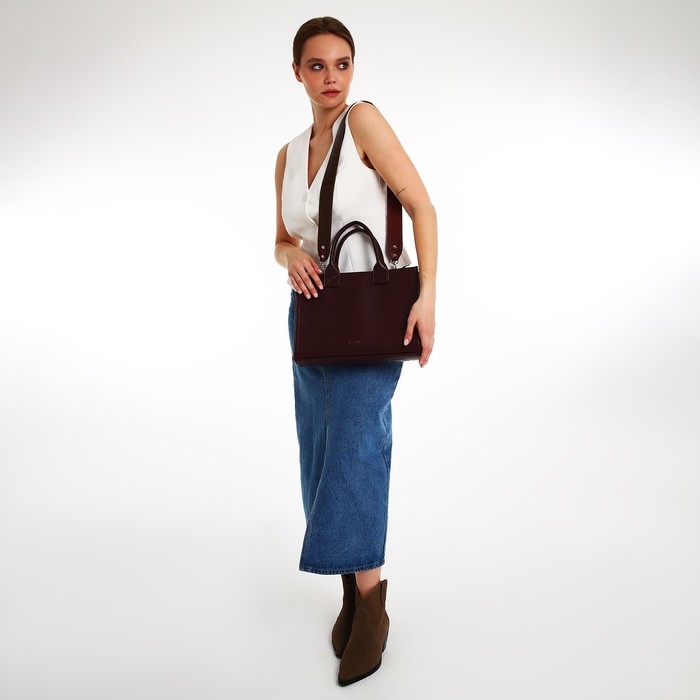 - Универсальный дизайн: классический бордовый цвет и минималистичный стиль делают сумку подходящей как для деловых встреч, так и для повседневных прогулок.