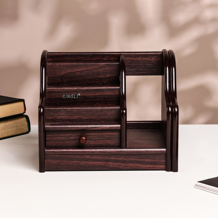 Органайзер 5 секций, 1 выдвиж ящик, 1 выдвиж полка, серия Ясень шимо темный с кантом темным