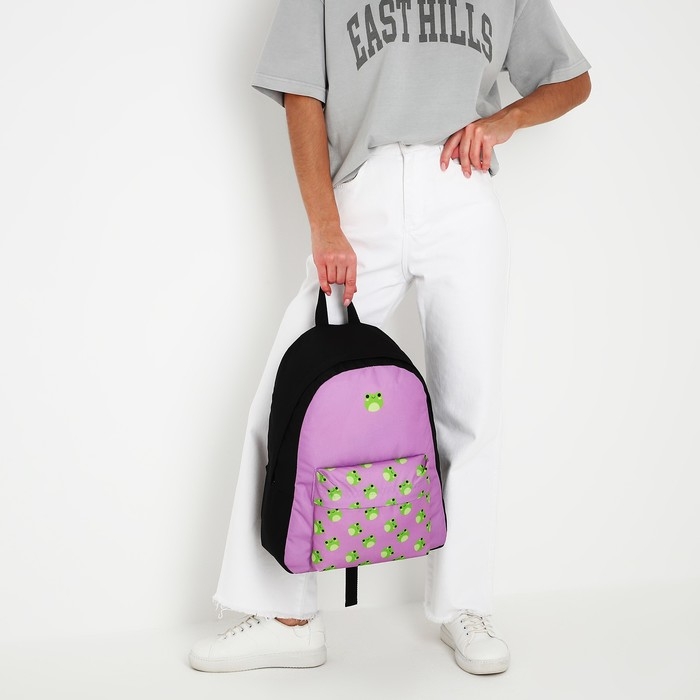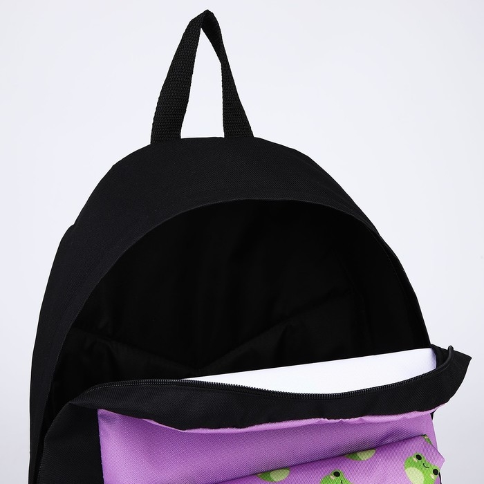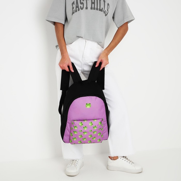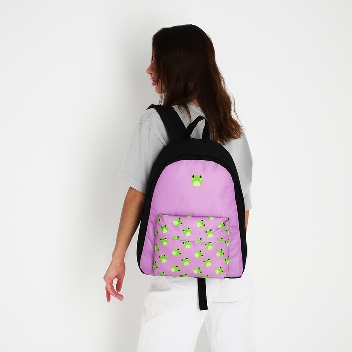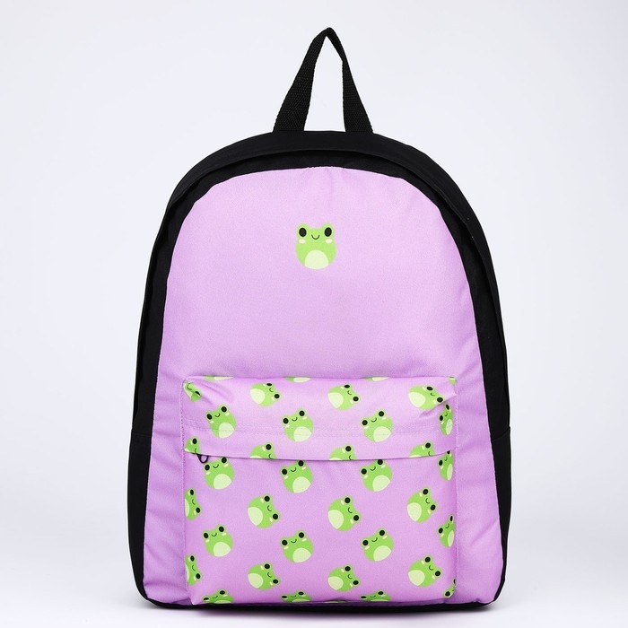 Рюкзак школьный текстильный «Лягушки», с карманом, 29х12х40 фиолетовый