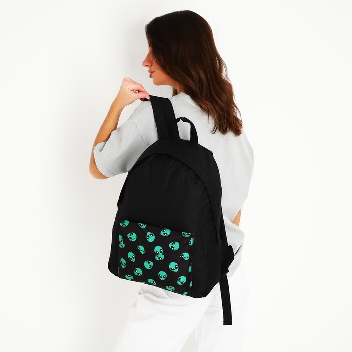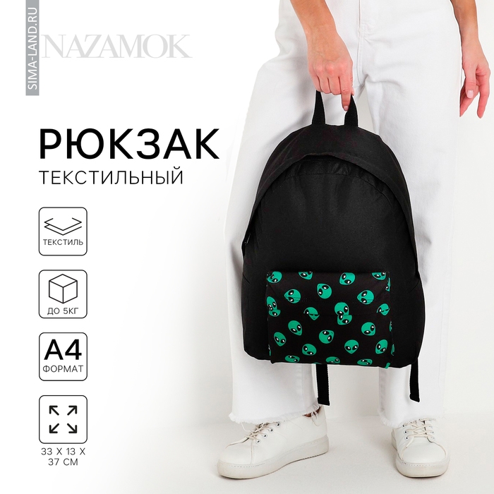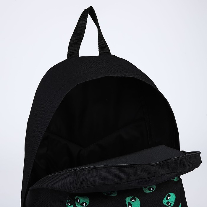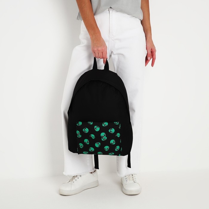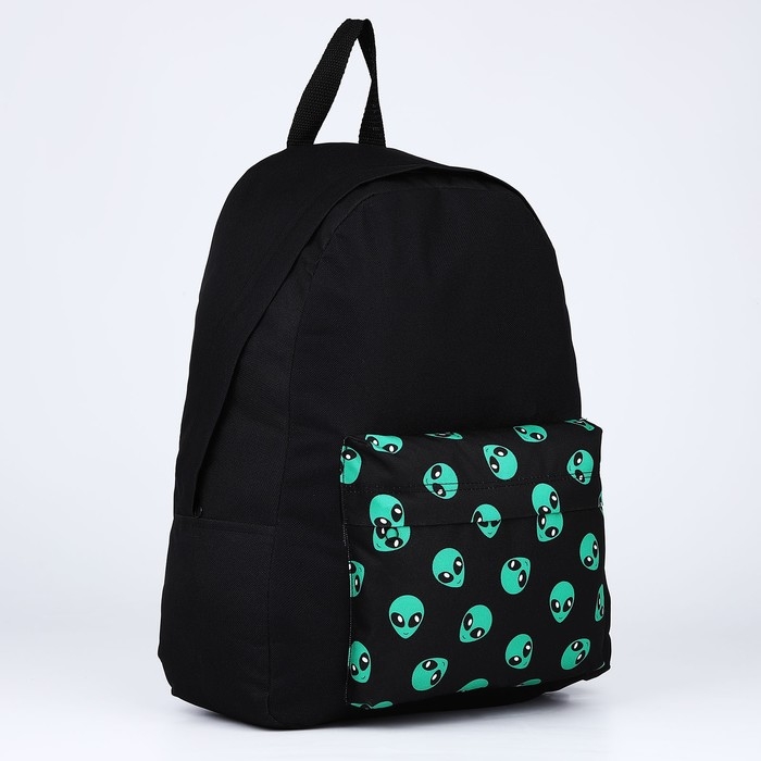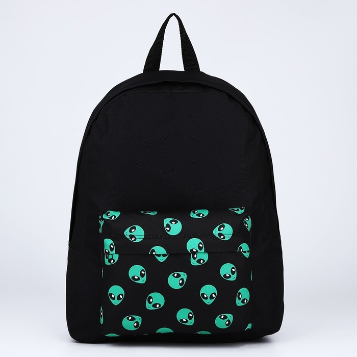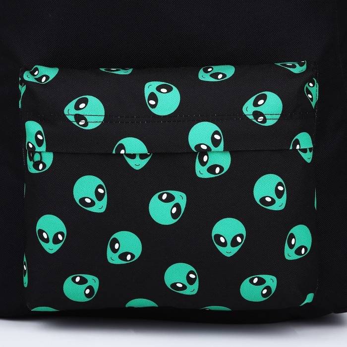 Рюкзак школьный текстильный «Пришелец», с карманом, цвет чёрный
