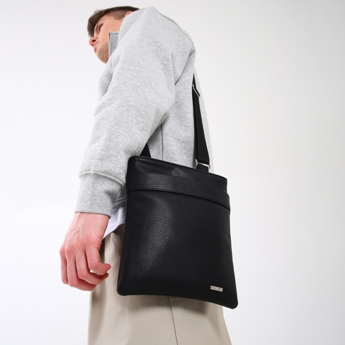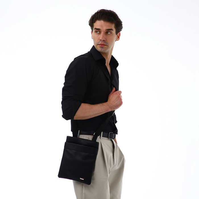 Сумка мужская через плечо TEXTURA, искусственная кожа, цвет чёрный