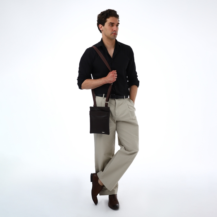 Сумка мужская через плечо TEXTURA, искусственная кожа, цвет коричневый