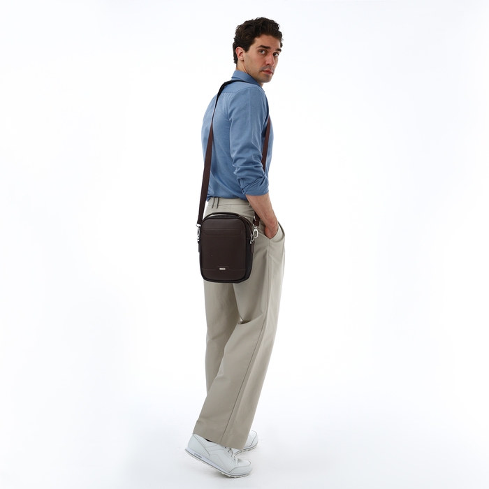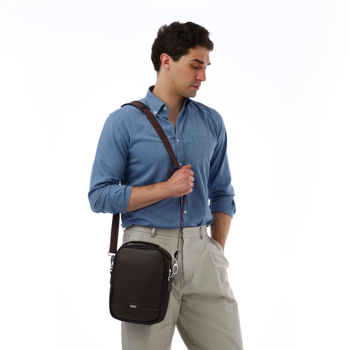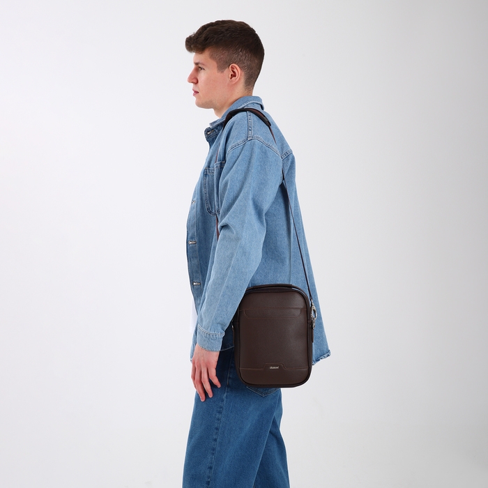 Сумка мужская через плечо TEXTURA, искусственная кожа, цвет коричневый
