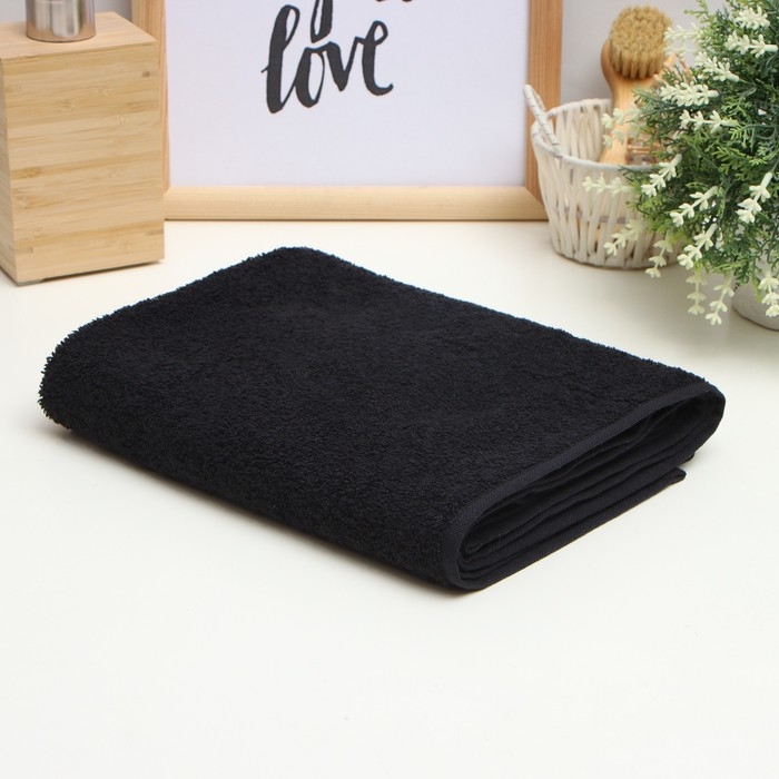Полотенце махровое Этель "Терри" 70*140 см, цв. черный, 100% хлопок, 430 г/м2