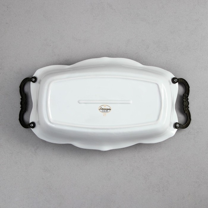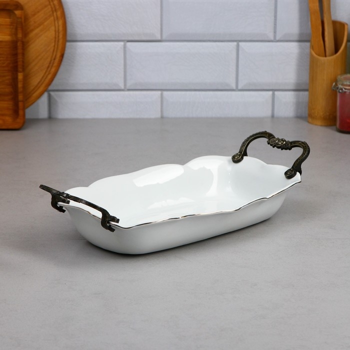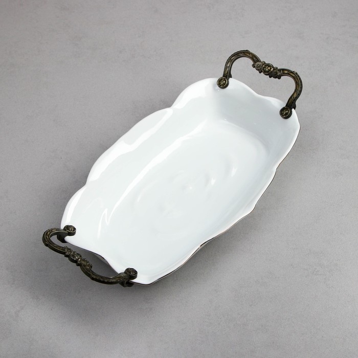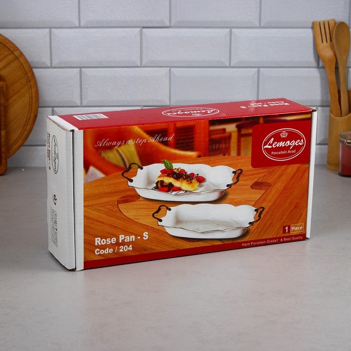 Блюдо «Роза», 1.8 л, прямоугольное, золотая обводка, фарфор, Иран