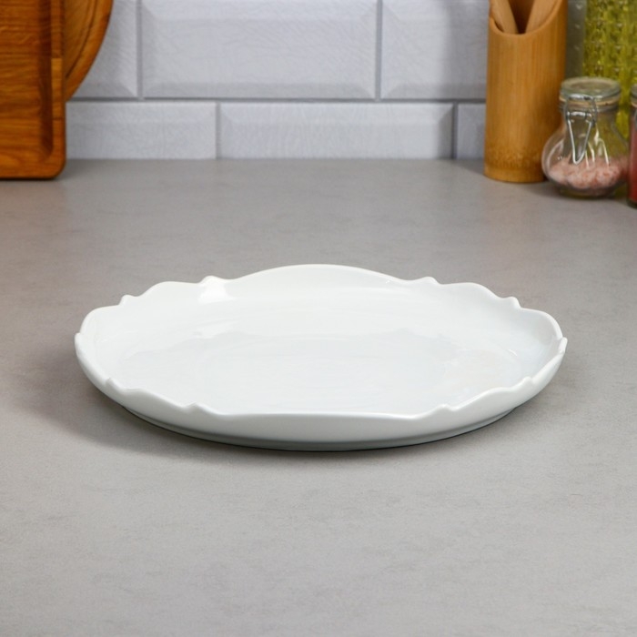 Элегантное фарфоровое блюдо - идеальный выбор для сервировки любых блюд. Блюдо из фарфора украсит любой стол и добавит изысканности вашей еде. Подходит для сервировки салатов, пасты, суши, закусок, а также холодца, рыбы, мяса и других блюд. Белый цвет и его гладкая текстура придают блюду изящный и элегантный вид, который подойдет для разных мероприятий и столовых сервировок. Также может использоваться в качестве декоративной подставки для фруктов, сыра и других украшений на вашем столе. Идеально подходит для сервировки различных явств на столе в кафе, ресторане, столовой или дома. Благодаря его форме и размеру, вы можете разнообразить ваше меню, включая нарезки, печенье, картофель фри, салаты, варенье, фрукты и сладости. Независимо от того, используется ли оно на свадьбе, вечеринке или просто для ужина в кругу семьи, это блюдо будет удачным выбором для подачи.