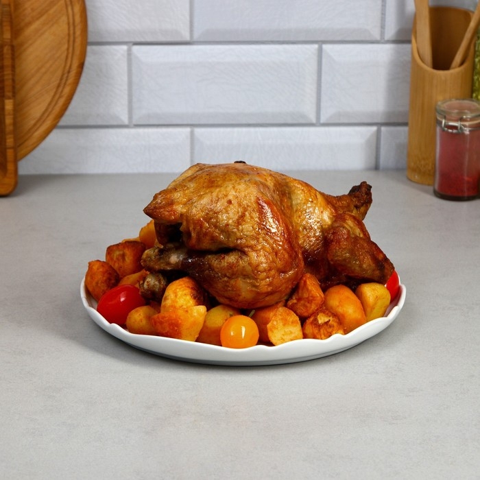 Элегантное фарфоровое блюдо - идеальный выбор для сервировки любых блюд. Блюдо из фарфора украсит любой стол и добавит изысканности вашей еде. Подходит для сервировки салатов, пасты, суши, закусок, а также холодца, рыбы, мяса и других блюд. Белый цвет и его гладкая текстура придают блюду изящный и элегантный вид, который подойдет для разных мероприятий и столовых сервировок. Также может использоваться в качестве декоративной подставки для фруктов, сыра и других украшений на вашем столе. Идеально подходит для сервировки различных явств на столе в кафе, ресторане, столовой или дома. Благодаря его форме и размеру, вы можете разнообразить ваше меню, включая нарезки, печенье, картофель фри, салаты, варенье, фрукты и сладости. Независимо от того, используется ли оно на свадьбе, вечеринке или просто для ужина в кругу семьи, это блюдо будет удачным выбором для подачи.