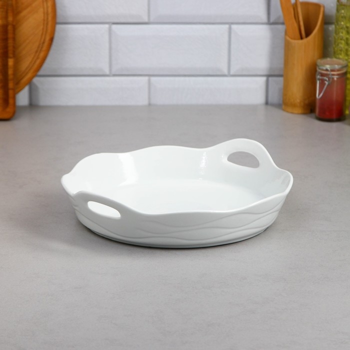 Блюдо фарфоровое для запекания круглое Magistro «Бланш», d=27 см, цвет белый