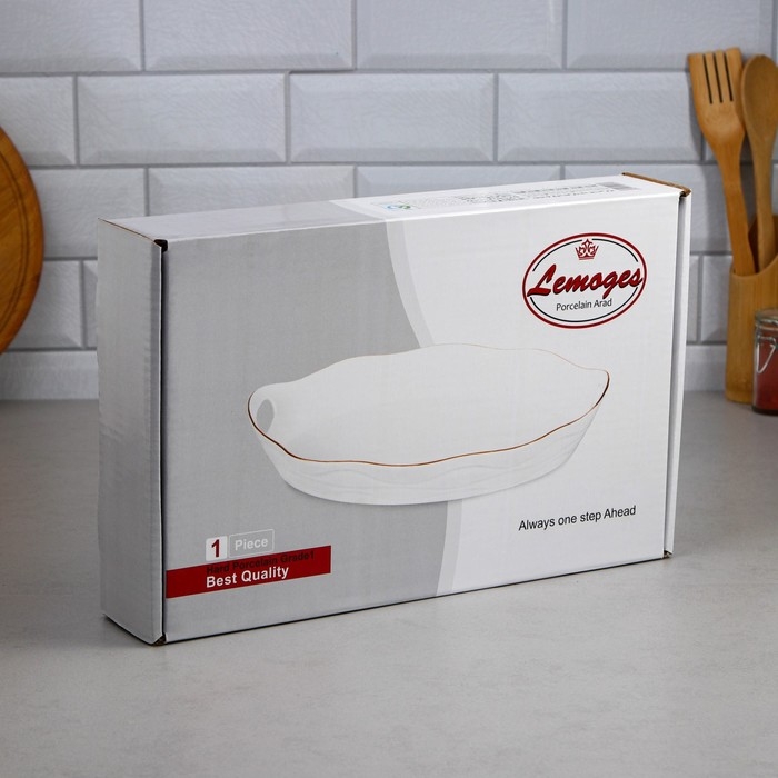 Форма для запекания из фарфора Доляна Organic Gold, 500 мл, 22×13×4,5 см, цвет белый