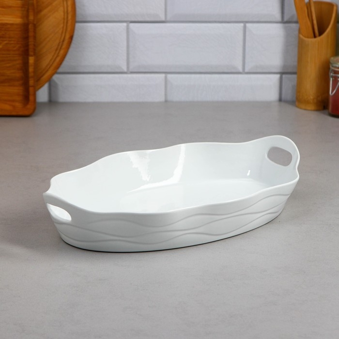 Блюдо фарфоровое для запекания Magistro «Бланш», 35,5×22 см, цвет белый