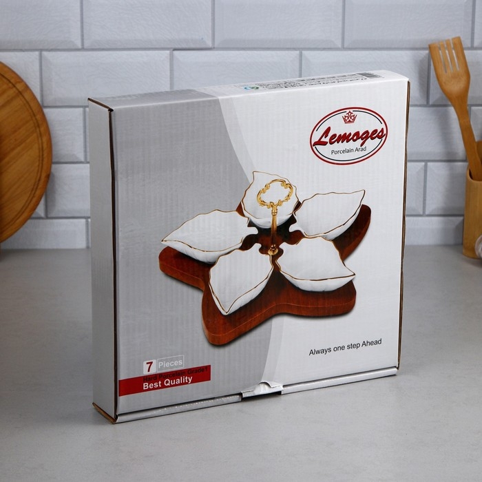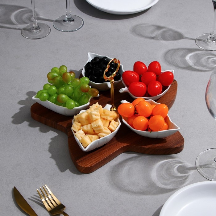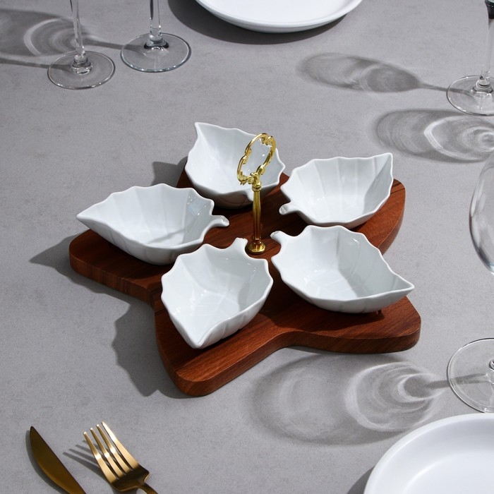 Менажница «Листья», 5 шт:150 мл, деревянное основание, фарфор, Иран