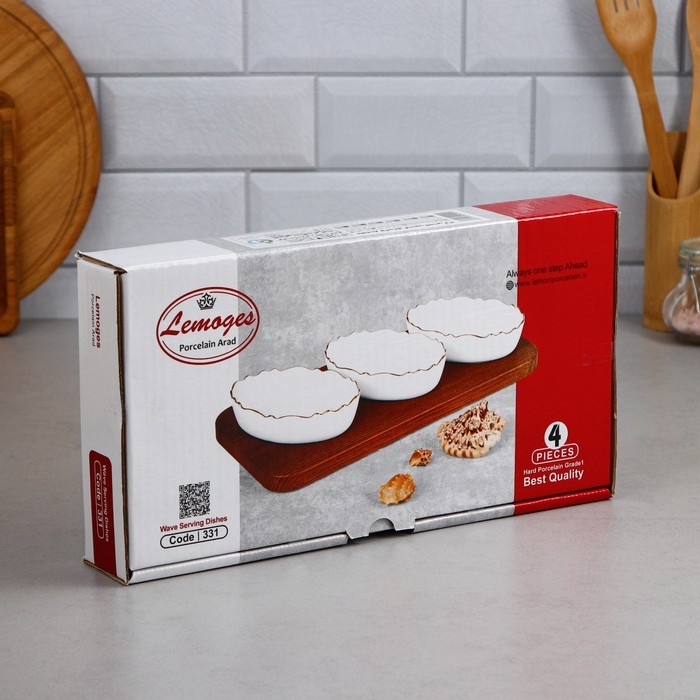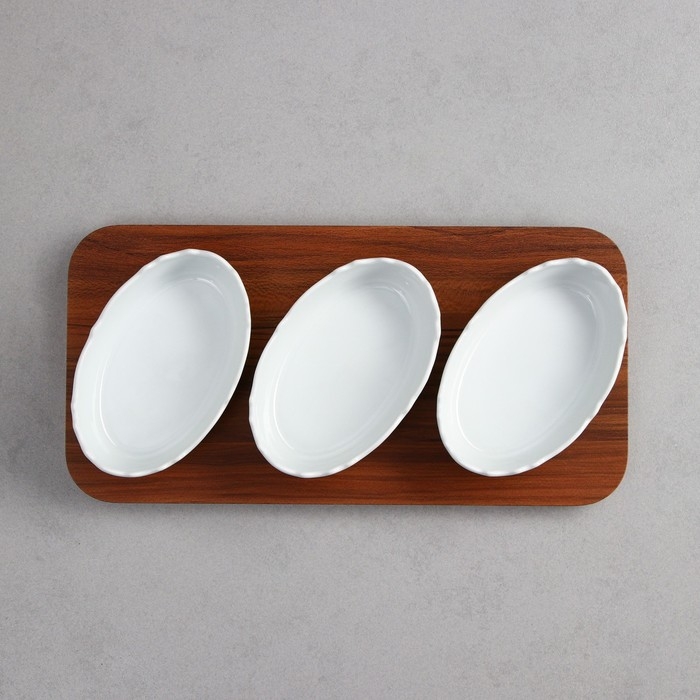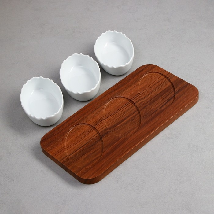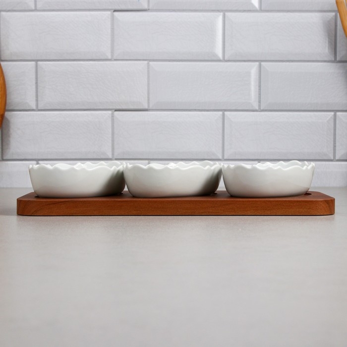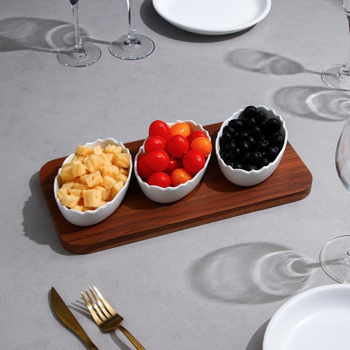 Менажница «Морская», 3 шт: 200 мл, деревянное основание, фарфор, Иран