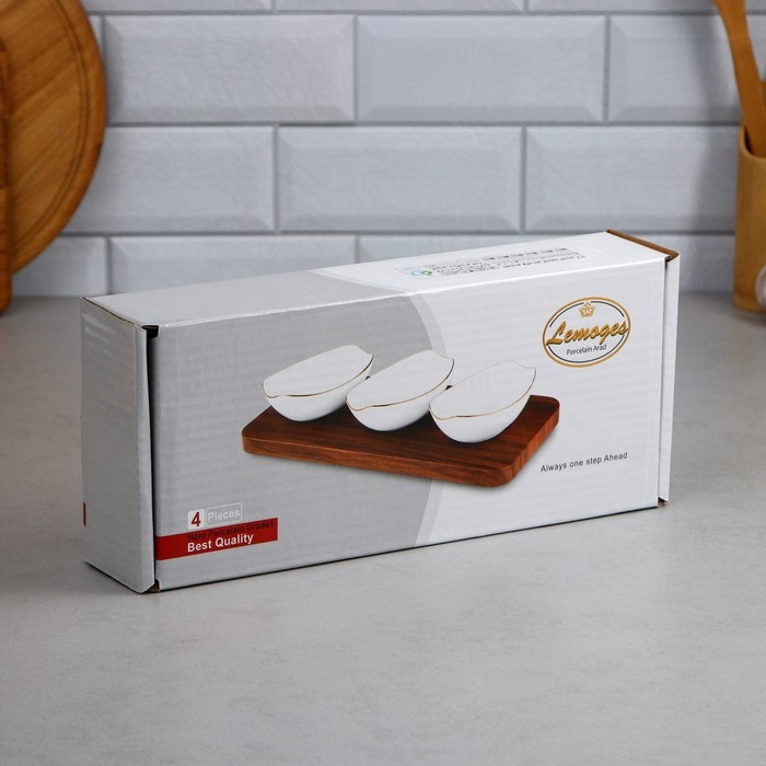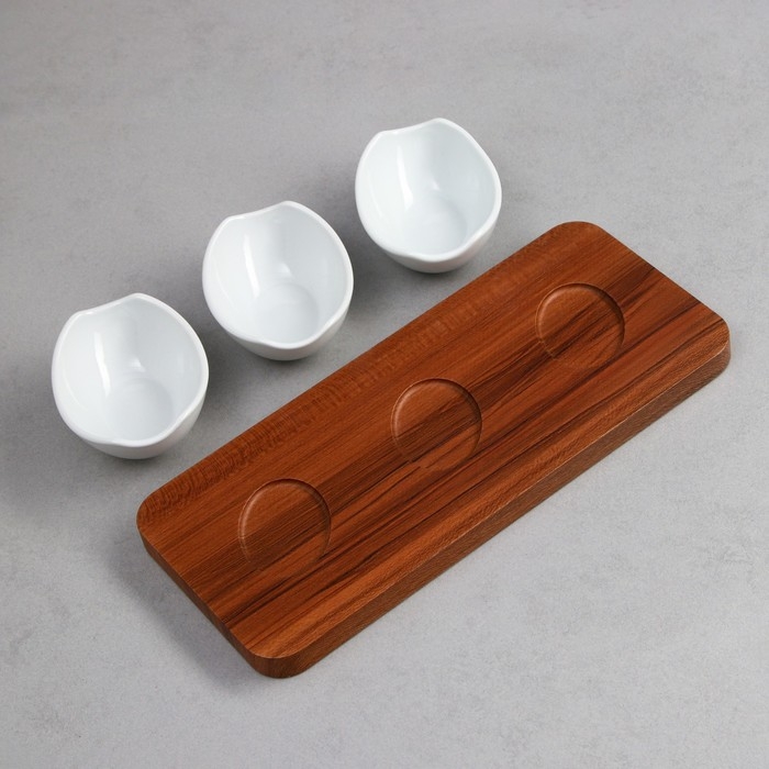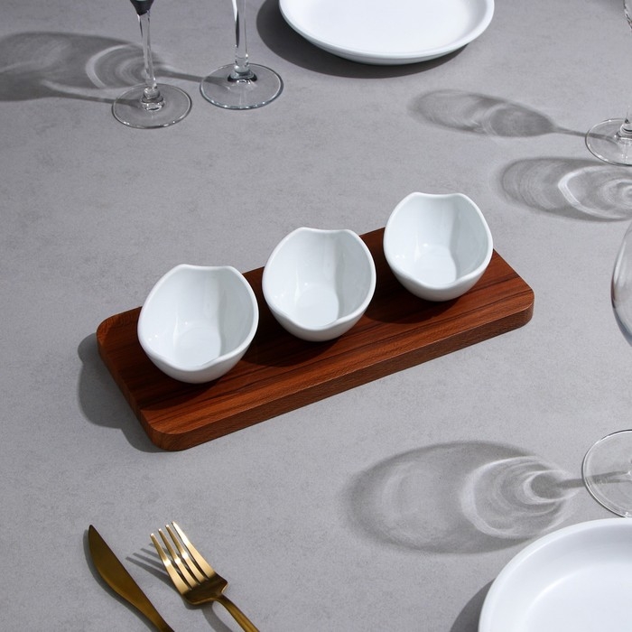 Менажница «Алале», 3 шт:150 мл, деревянное основание, фарфор, Иран
