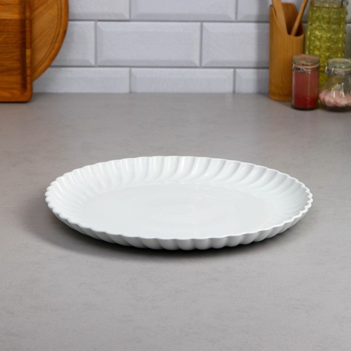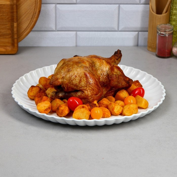 Элегантное фарфоровое блюдо - идеальный выбор для сервировки любых блюд. Блюдо из фарфора украсит любой стол и добавит изысканности вашей еде. Подходит для сервировки салатов, пасты, суши, закусок, а также холодца, рыбы, мяса и других блюд. Белый цвет и его гладкая текстура придают блюду изящный и элегантный вид, который подойдет для разных мероприятий и столовых сервировок. Также может использоваться в качестве декоративной подставки для фруктов, сыра и других украшений на вашем столе. Идеально подходит для сервировки различных явств на столе в кафе, ресторане, столовой или дома. Благодаря его форме и размеру, вы можете разнообразить ваше меню, включая нарезки, печенье, картофель фри, салаты, варенье, фрукты и сладости. Независимо от того, используется ли оно на свадьбе, вечеринке или просто для ужина в кругу семьи, это блюдо будет удачным выбором для подачи.