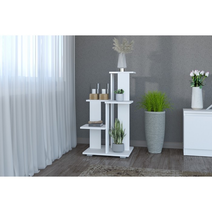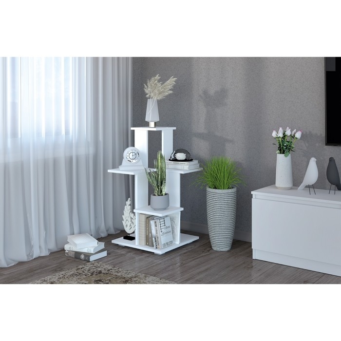 Подставка сочетает в себе практичность и элегантность. Она предоставляет обширные полки, подходящие для хранения различных предметов - начиная от декорированных мелочей и заканчивая живыми цветами в горшках.