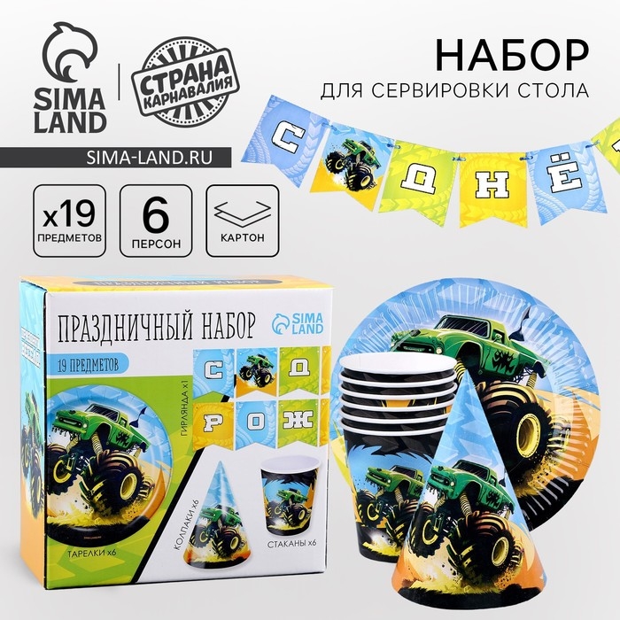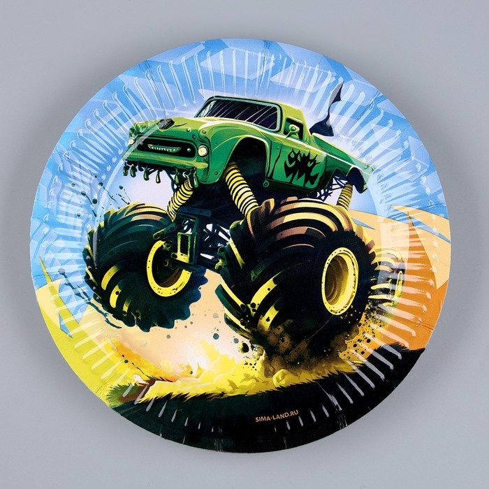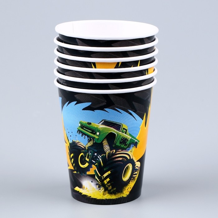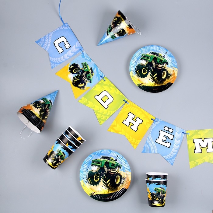 Набор бумажной посуды одноразовый Тачка»: 6 тарелок, 1 гирлянда, 6 стаканов, 6 колпаков