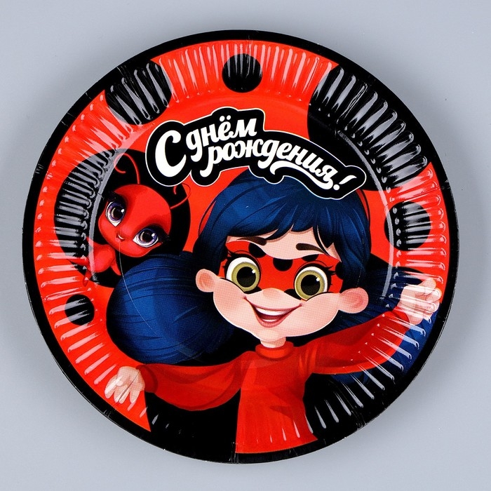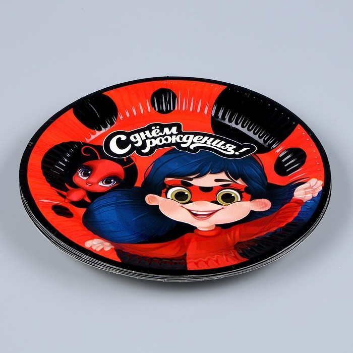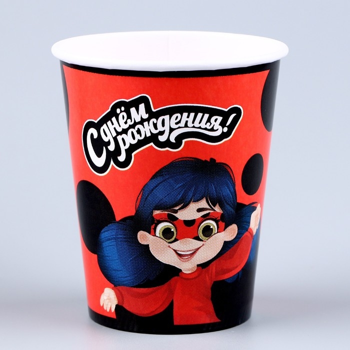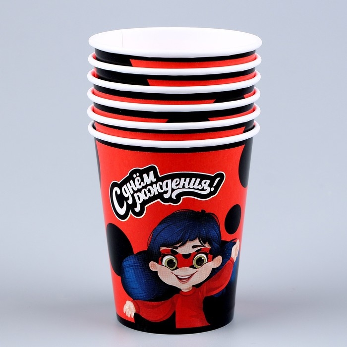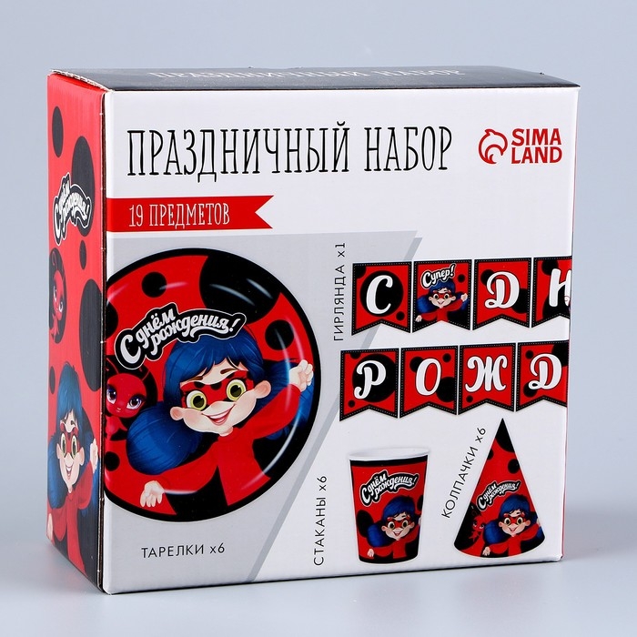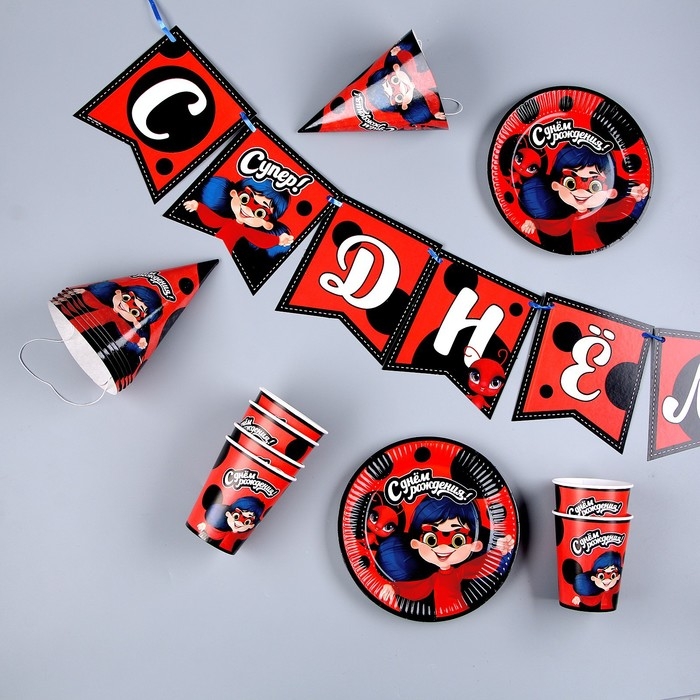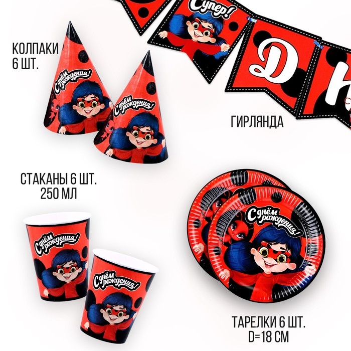 Набор бумажной посуды одноразовый С днём рождения» красный: 6 тарелок, 1 гирлянда, 6 стаканов, 6 колпаков