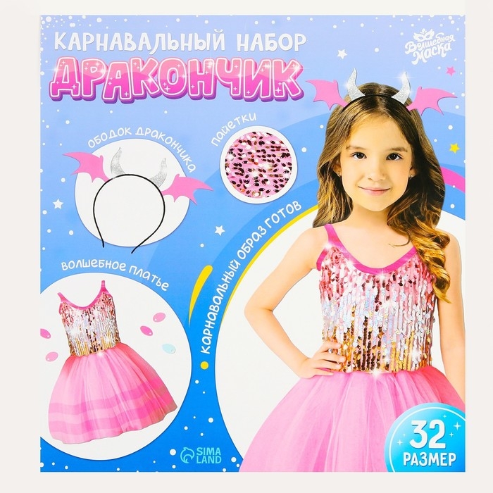 Карнавальный набор «Дракончик»: розовое платье, ободок
