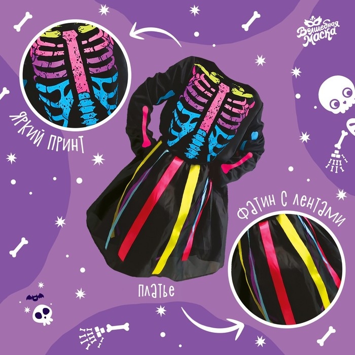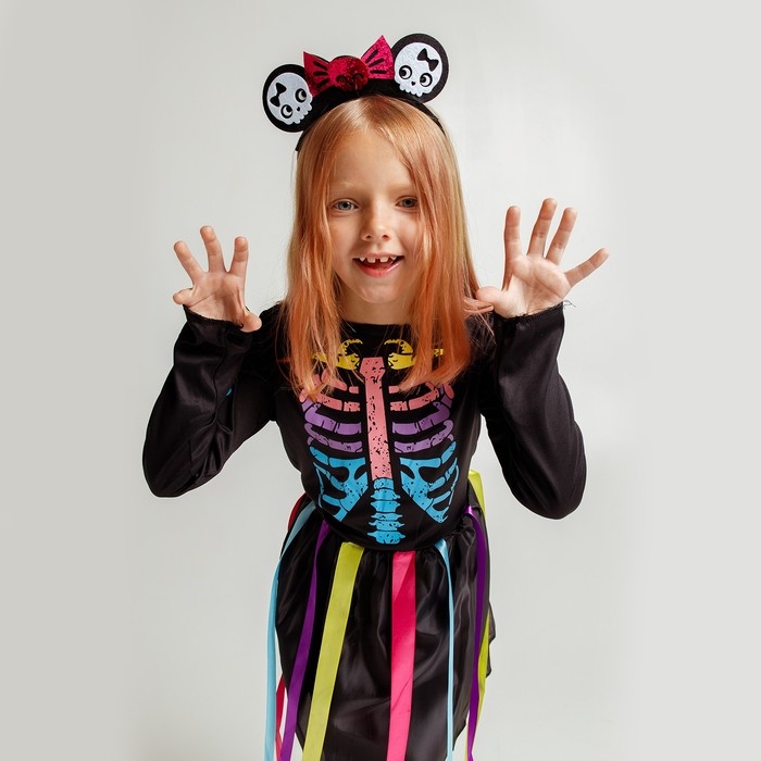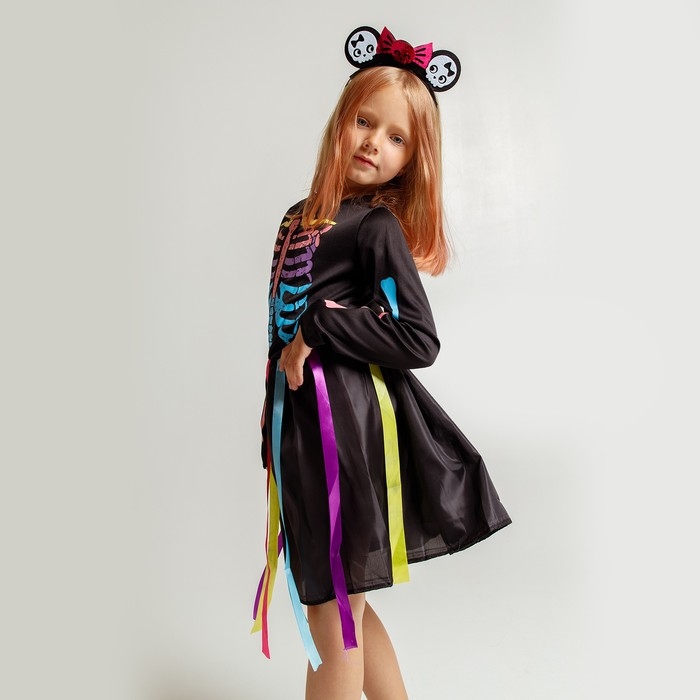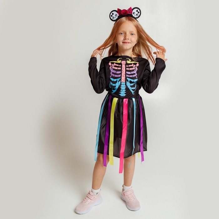 Карнавальный набор «Радужный скелетик», платье и ободок, р. S