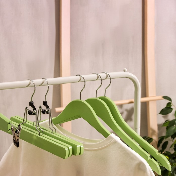 Плечики - вешалки для одежды LaDо́m Brillant, 44,5×23×1,2 см, 3 шт, деревянные, цвет фисташковый