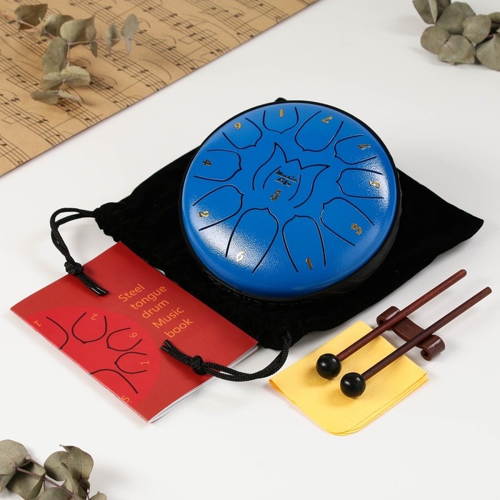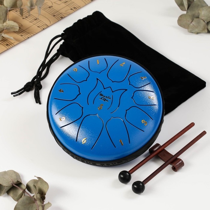 Глюкофон - музыкальный инструмент, синий, 11 лепестков, 17 х 8 см
