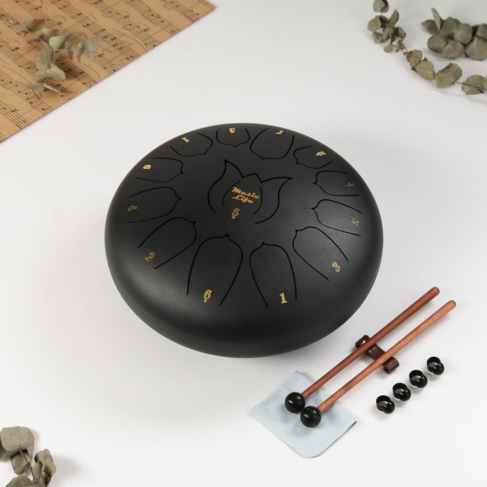 Глюкофон - музыкальный инструмент, черный, 13 лепестков, 30 см