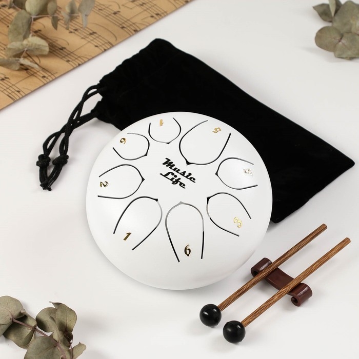 Глюкофон - музыкальный инструмент, белый, 8 лепестков, 15 х 9 см