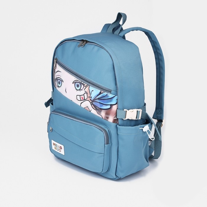 Рюкзак школьный из текстиля на молнии, 6 карманов, цвет синий