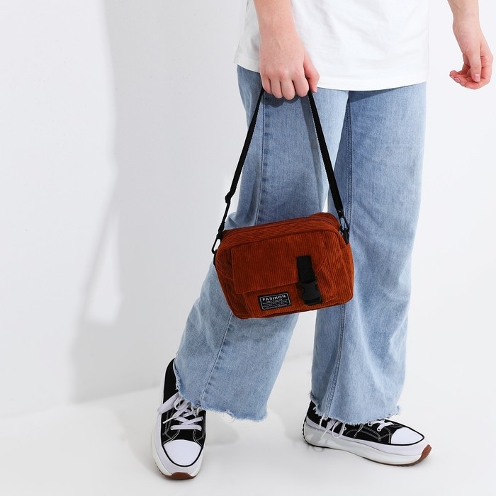 Сумка молодёжная на молнии, 1 наружный карман, цвет коричневый