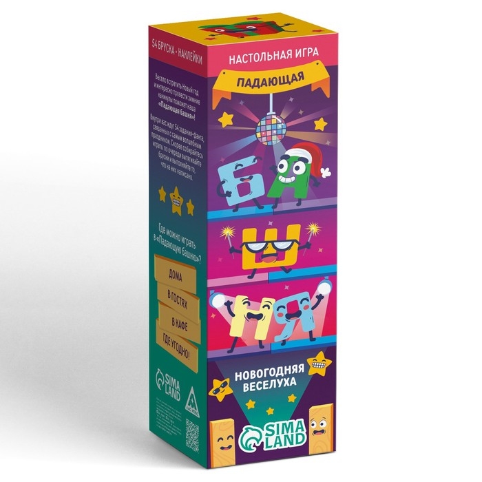 Новогодняя падающая башня «Новый год: Веселуха», 54 бруска и наклейки, 6+