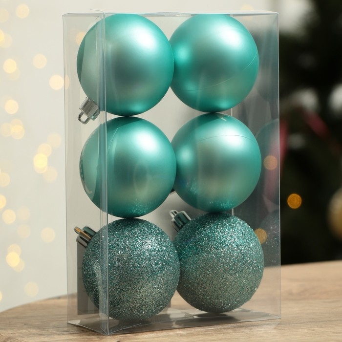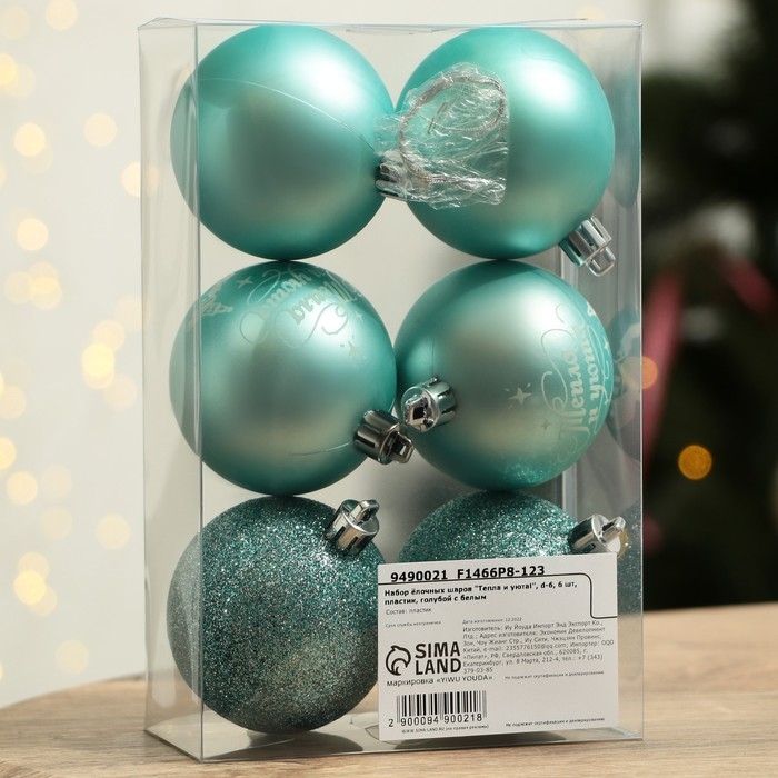 Шары ёлочные новогодние «Тепла и уюта!», на Новый год, пластик, d=6, 6 шт., цвет голубой с белым