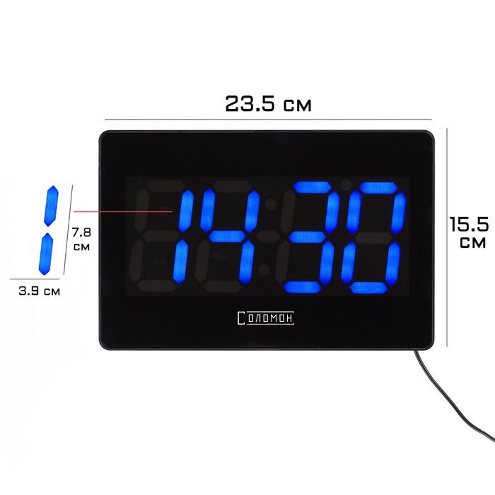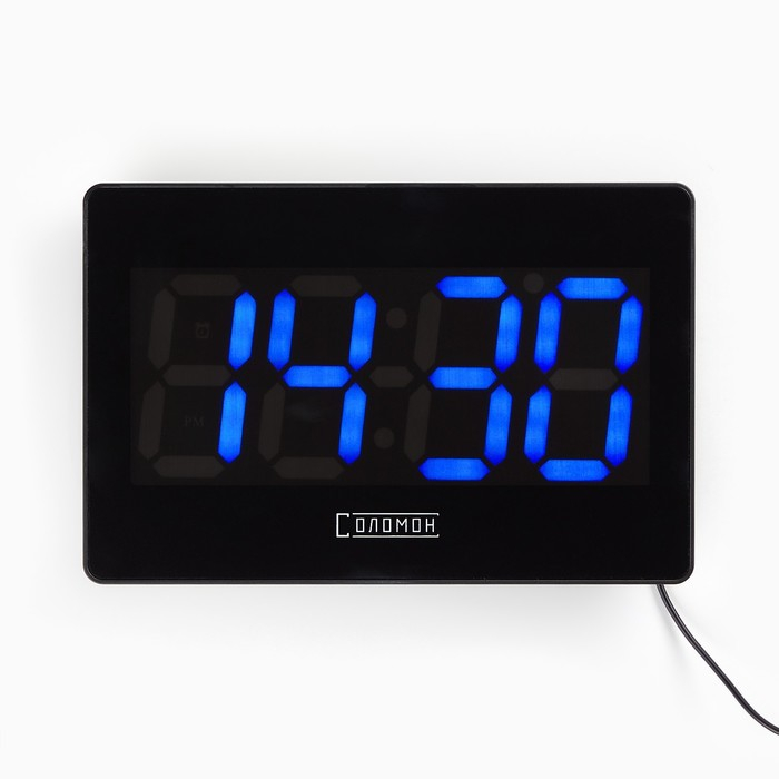 Часы электронные настенные, настольные "Соломон", с будильником, 15.5 х 23.5 см, синие цифры