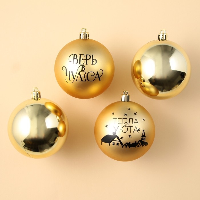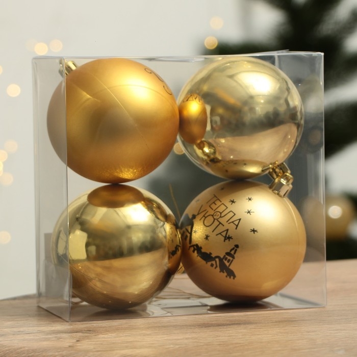 Шары ёлочные новогодние «Тепла и уюта!», на Новый год, пластик, d=8, 4 шт., цвет золотая гамма